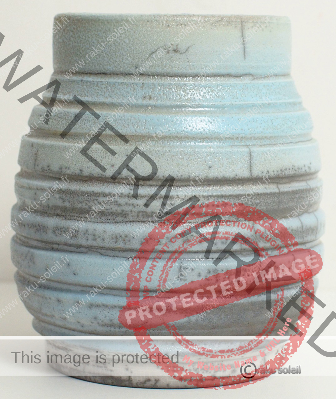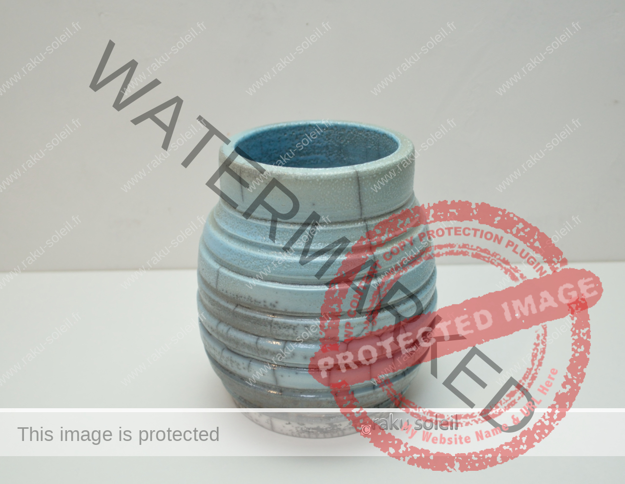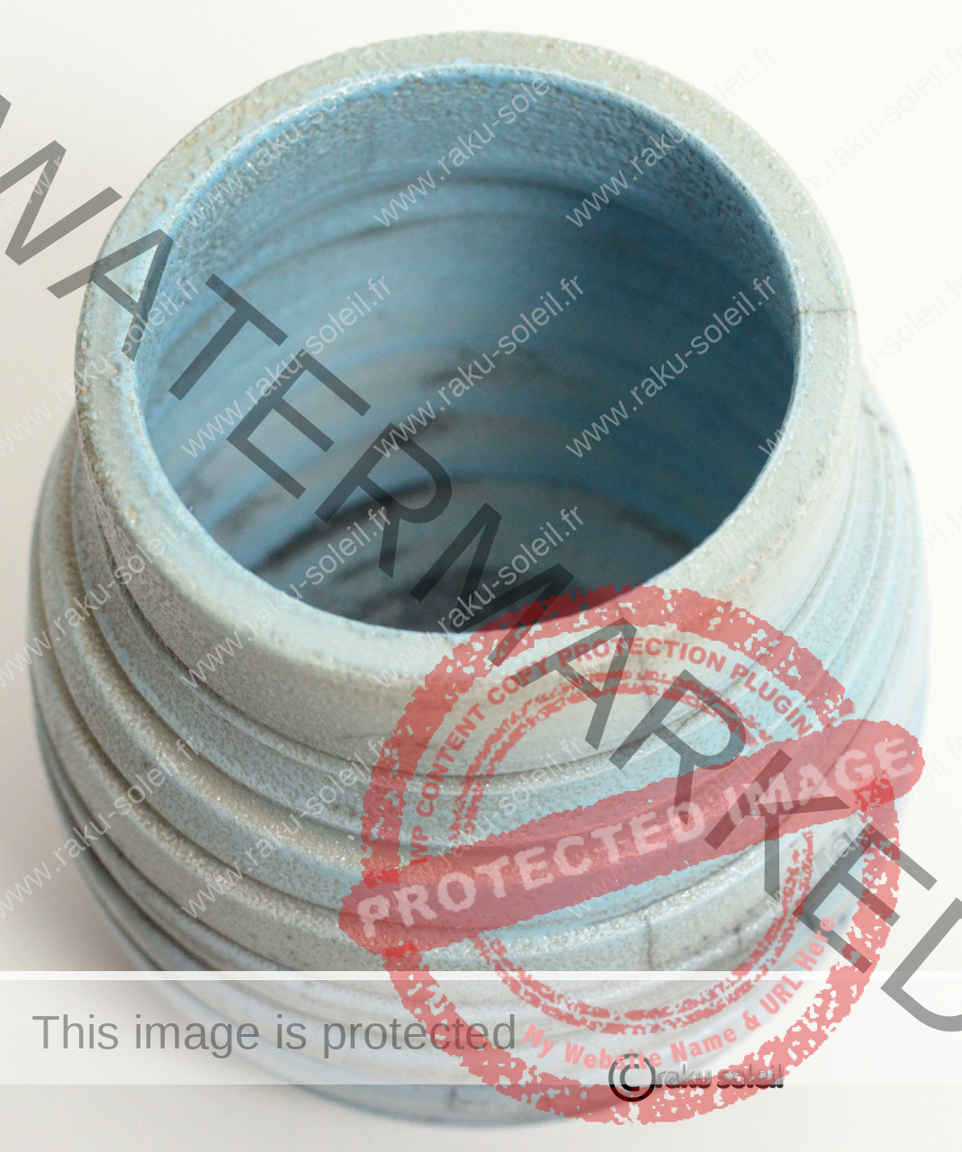 Elle s’est enivrée sur le tour du potier. Émaillée de bleu dragée et passée l’épreuve du feu avec succès et modestie.